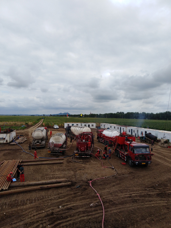 大慶東油鉆采有限公司固井隊(duì)于2018年8月5日進(jìn)行固井施工。注灰,低密度60方,原漿18方。替泥漿34.2方,水泥漿返出地面,施工**順利,一切正常。